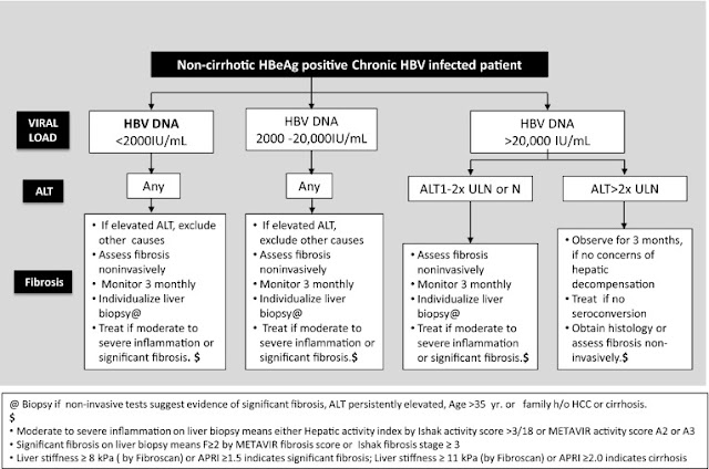 Below: Treatment indications for noncirrhotic HBeAg-negative chronic HBV-infected patients